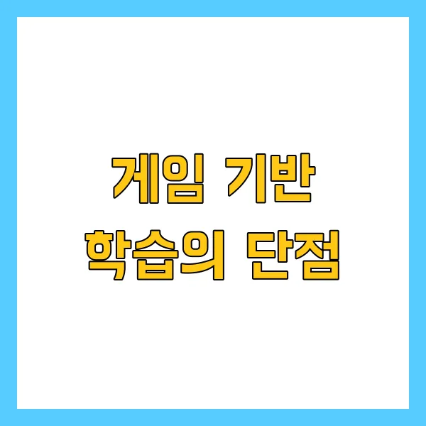 - 게임 품질 차이 모든 게임이 교육적 가치를 지니는 것은 아닙니다. 때로는 교육적 목표와 일치하지 않는 게임이 사용될 수 있으며, 이는 잘못된 학습 결과를 초래할 수 있습니다. 따라서 교육적 목표에 부합하는 게임 선택이 필수적입니다.