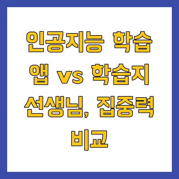 오늘날 교육 방법이 점점 디지털화됨에 따라 우리는 아이들이 어떻게 가장 효과적으로 집중력을 높일 수 있을지를 고민하게 됩니다. 인공지능(AI) 학습 앱과 전통적인 학습지 선생님을 통한 교육은 각기 다른 경험과 장점을 제공하지만, 결국 어떤 방법이 아이들에게 더 많은 집중력을 줄 수 있을까요? 두 방법을 비교하여 알아보겠습니다.